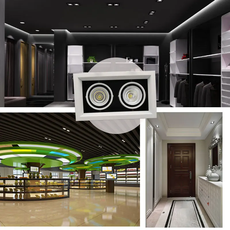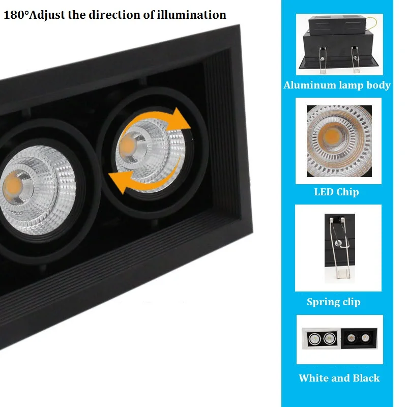 LukLoy 2 Heads COB Grille Light Mall Adjustable Illumination Direction Downlight Office Hotel LED S